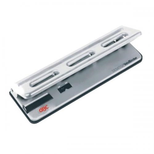 The Desktop VeloBinder produces stylish, distinctive A4 documents on the desktop.in seconds! By re-opening the 4 prongs, pages can easily be changed or substituted - simply unlock, add and re-close to represent the best of one's work. The GBC DeskTop VeloBind is a compact and totally portable machine- so is ideal for desktop use or on the move binding. This portable binder is capable of punching up to 20 sheets at a time and can bind up to 200 sheets (80g/m) with a single strip size. Adding and deleting pages is so quick and simple with the aid of the inclusive bind/de-bind tool and re-closable strips. The desktop veloBind is an all metal construction for long term durability and reliability.